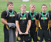 4 x 200 relay: First Place: Damen Bakke, Jared Hubbard, Josiah Hubbard, Ethan Dorman